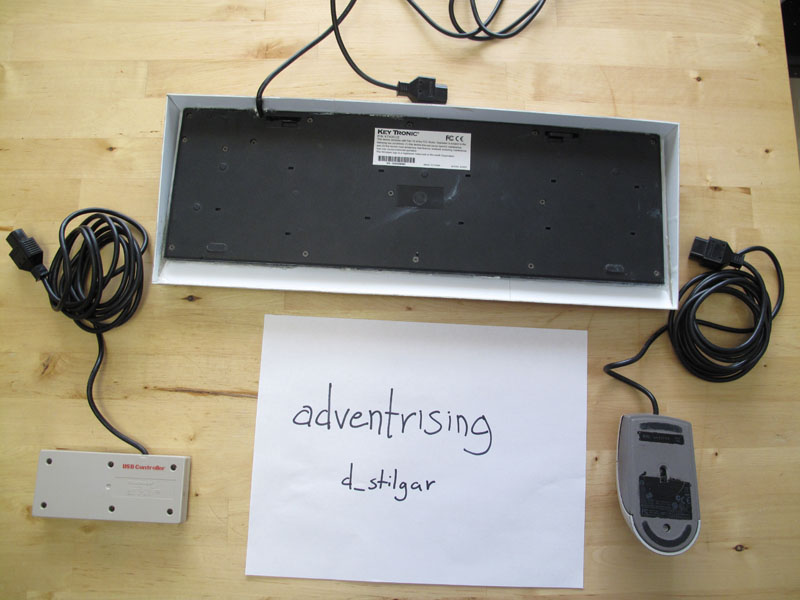 Keyboard, Mouse, and USB controller. Note: All of these are USB, but the cords have been changed to NES cords, and the controller port is just wired into be USB.