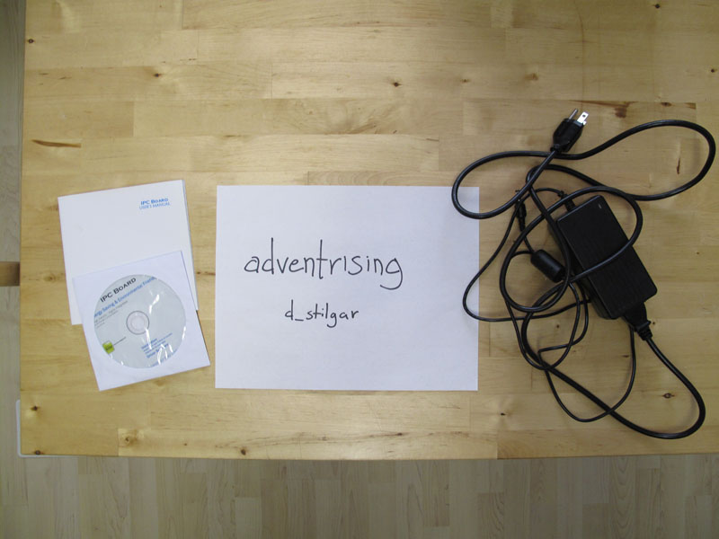 Power adapter and driver CD. The Power Brick is rated at 70W, but that's enough for this build.