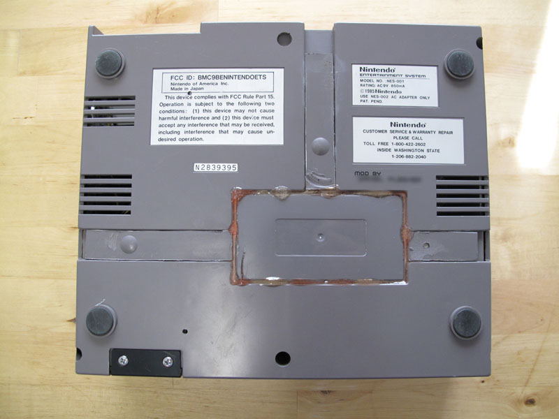 Bottom of NES case. Another decal identifies that the case was built by me, and has my real name on it, which is blurred here.
