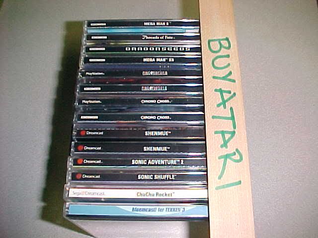 Dreamcast and PS1 Empty game cases. No instructions no games. Just cases. Chu chu rocket does have instructions rest don't. Megaman 8 megaman X5,threads of fate,dragonseeds,Final Fantasy IX,Chrono Cross,Shenmue limited edition,Sonic Adventure 2 Sonic Shuffle,chuchu rtocket and Bleemcast tekken3.