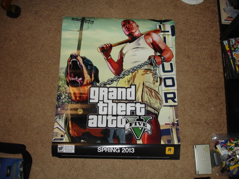 Lot #11 - Starting Bid = $10 BIN = $18 (GTA5 poster, 2-sided. Oh yea, those DS systems are not included!)