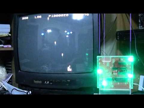 I made a little "Let's Play" video showing off the blinky lights and gameplay. Sorry about the crappy capture. My camera always overexposes the CRT screen.