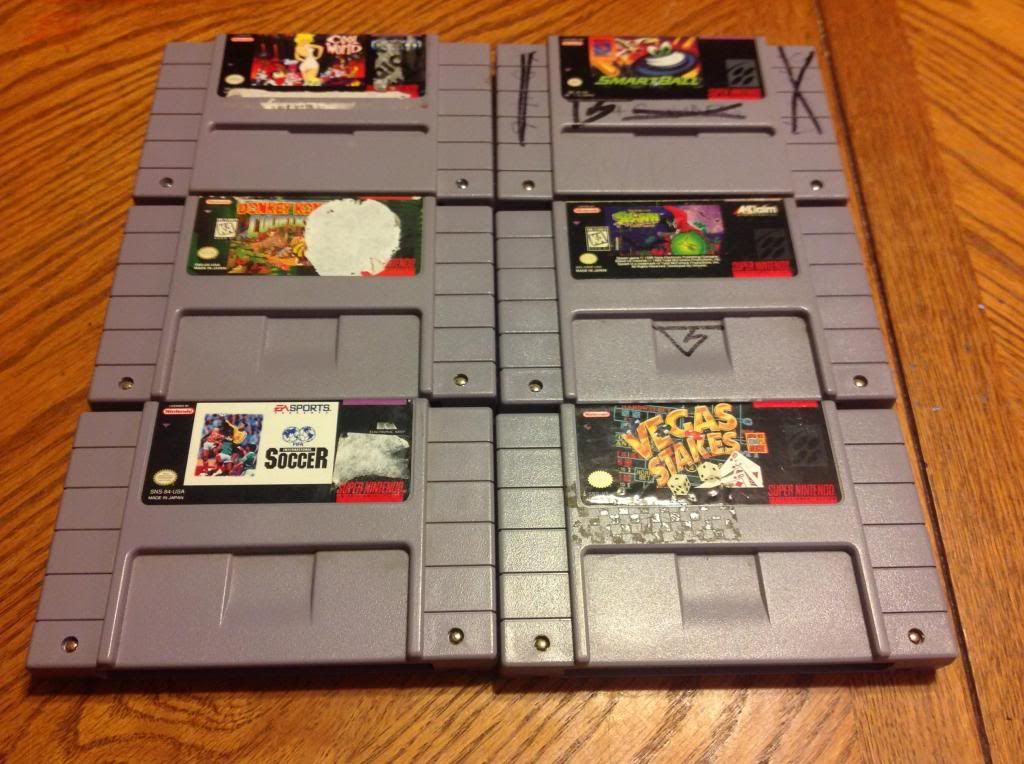 - Super Mario Bros. 2 ("McDonald" etched into the front of cart, end label damaged, marker on back)