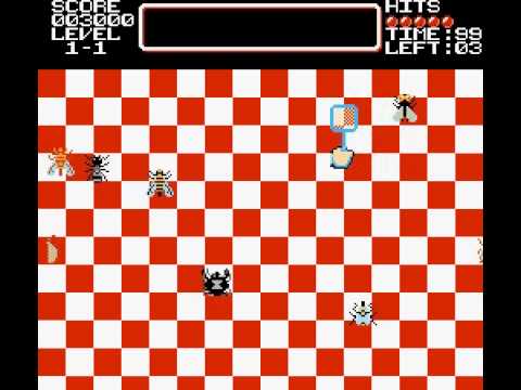 After releasing Beat 'em and Eat 'em, I have a bigger game in the works for you guys. Basically, it's a game where you have to swat various insects for no reason at all, except for the more arcadey Picnic Defense mode that I want to implement in the game (where the objective is quite obvious). However, I won't have much time to program this month (mostly because of the exams) so don't expect the game to be out tomorrow... Besides that, I only set up the sprites (the bugs don't even move) and I'm still a bit of a beginner in 6502 Assembly so it may take ages to come (hopefully not). But hey, programming and releasing a real NES game has always been my dream so let's try to do this